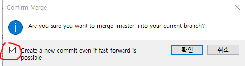 위의 Options > Git 에서 체크 안하면 merge 할때 마다 체크 해줘야 함